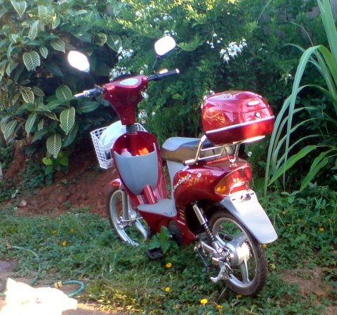 Tämän vuoden elokuussa Nancy halusi ostaa minulle sähköskootteri, josta oli nähnyt ilmoituksen lehdessä. Minä torjuin ajatuksen aluksi, ja halusin tutkia asiaa vielä. Paljonhan niistä sähköisistä kulkupeleistä puhutaan, mutta eivät ne vielä ole riittävän kehittyneitä: akut ovat painavia, ja niillä ei kovin pitkälle ajeta. Tulin kuitenkin siihen tulokseen, että parempi se on kuin polkupyörä, erityisesti siinä mielessä, että pyöräillessä tulee yleensä niin hiki, että perille päästyä pitäisi päästä suihkuun, eikä se ole aina mahdollista. Ajattelin hankkia sellaisen polkupyörän, jossa on sähkömoottori apuna, mutta tarvittaessa sillä voisi polkea ihan normaalisti. Oli katsonut netistäkin sopivan mallin, ja Nancyn kanssa lähdettiin sitä sitten koeajamaan ja ostamaan. Nancy kuitenkin ihastui enemmän skootterimalliin, joten minä päätin antaa periksi, etenkin kun niissä oli isommat akut kuin polkupyörämalleissa. Ja erityisesti kun minuakin niin viehättää tuo oikea mopon ulkonäkö.