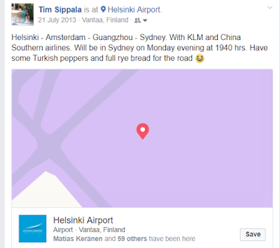 Lento Helsingistä Kiinaan ja edelleen Australian Sydneyyn.