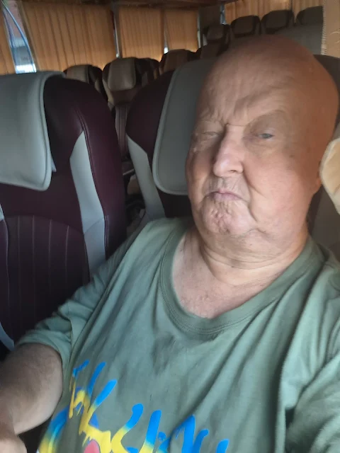 - 21.6;2024 ja vähän ennen. Poikani ja minä. Vuorokauden matkani jällkeen hänellä oli paljon kerrottavaa.